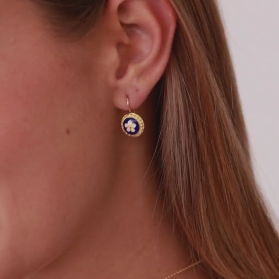 Pendientes de oro de 19,2Kt con esmalte. Medalla de 1.4cm y largo total 2cm. 2.3gr. Hecho a mano en Portugal.