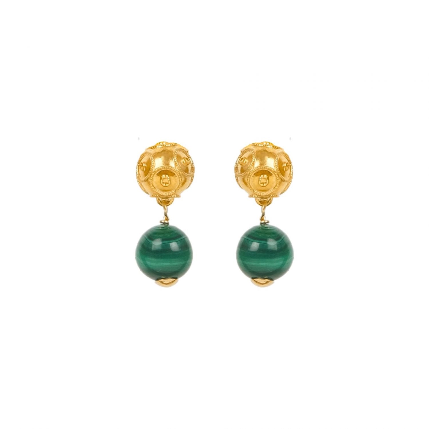 Pendientes Conta de Viana en Oro de 19,2Kt con Malaquita.