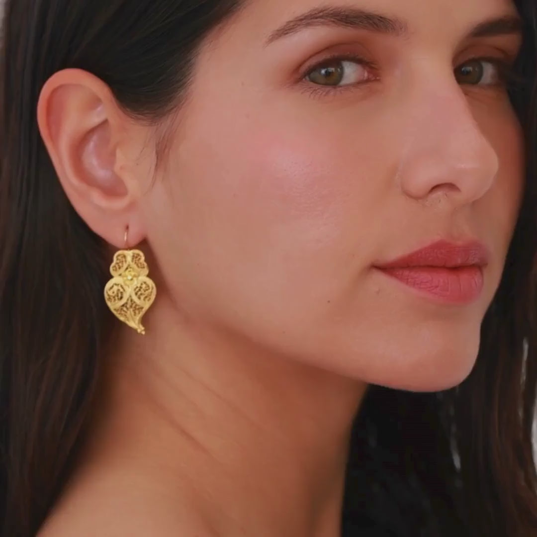 Pendientes Corazón de Viana de Oro en filigrana, perteneciente a la Colección Oro Portugués (Oro de 19,2kt).