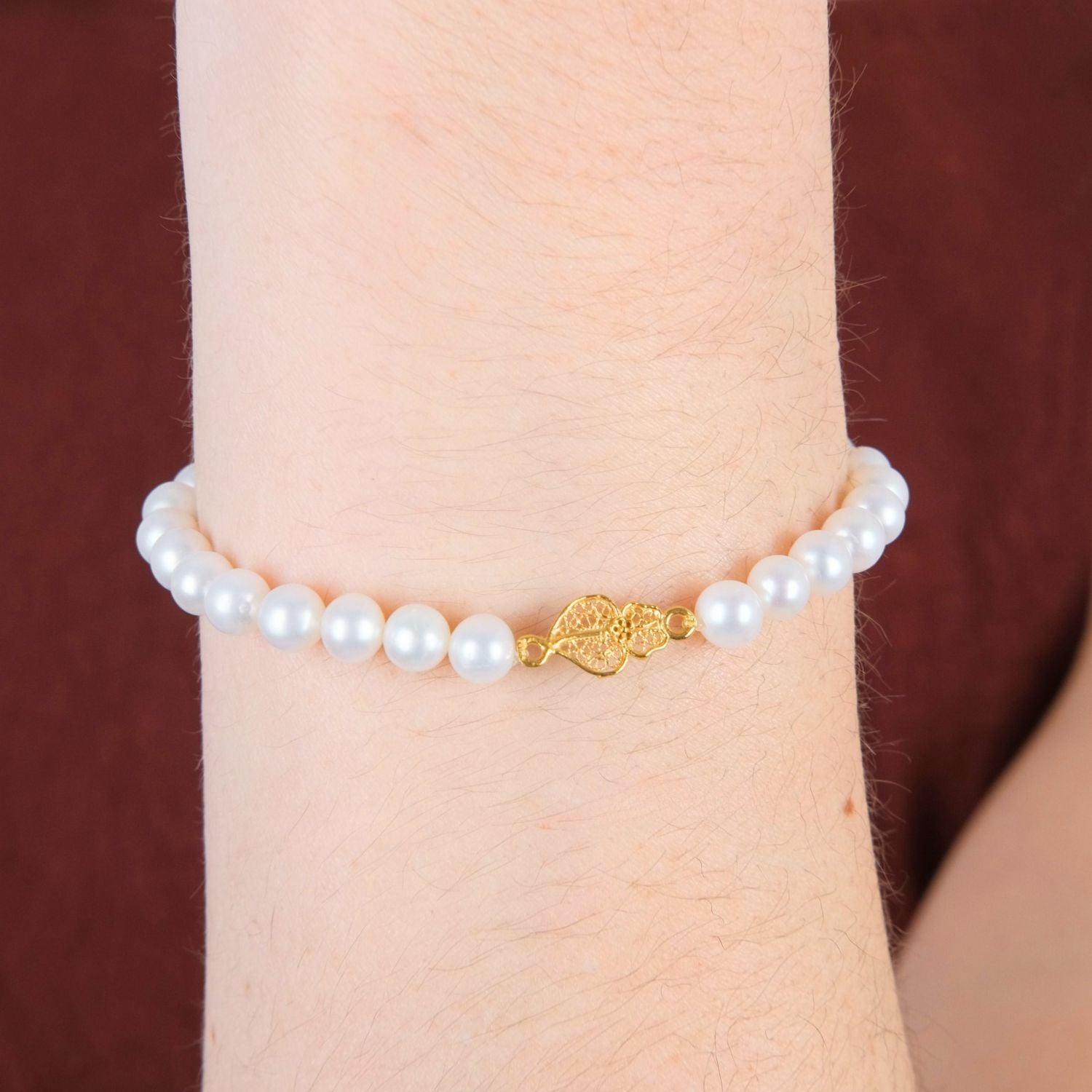 Pulsera de oro de 19,2 kt, centro con 1cm y 0.4gr. Pulsera elástica de perlas. Hecho a mano en Portugal.