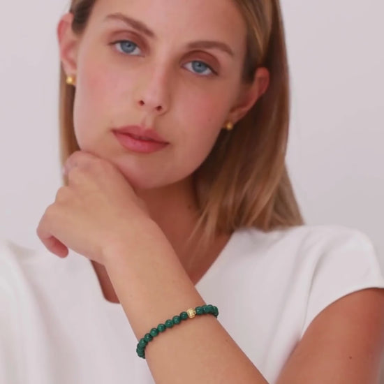 Pulsera de oro de 19,2 kt, centro con 6mm y 0.4gr. Pulsera elastica de malaquita. Hecho a mano en Portugal